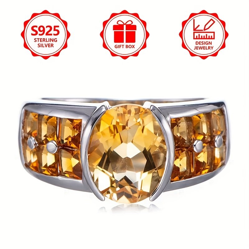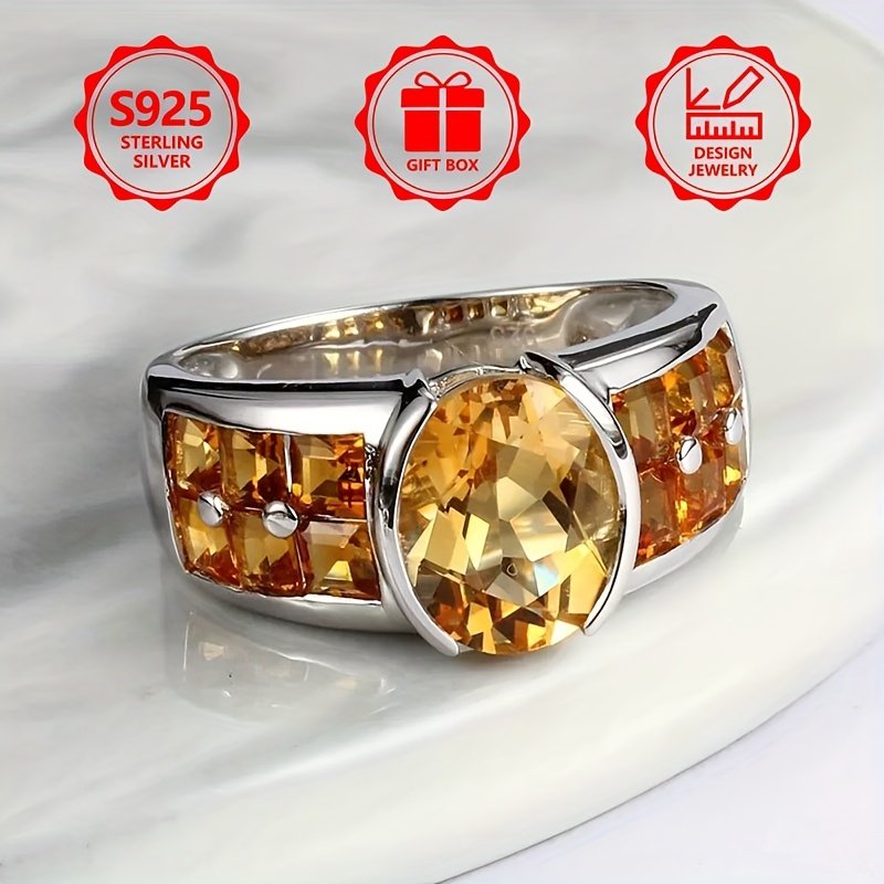 925 Sterling Silver Women'S Fashion Ring, Elegant and Stylish, Exquisite Ring with Yellow Inlaid Cubic Zirconia, Perfect for Summer Travel, Holiday Parties, Casual Attire, Ideal Gift for Yourself or Friends, Includes Bonus Gift