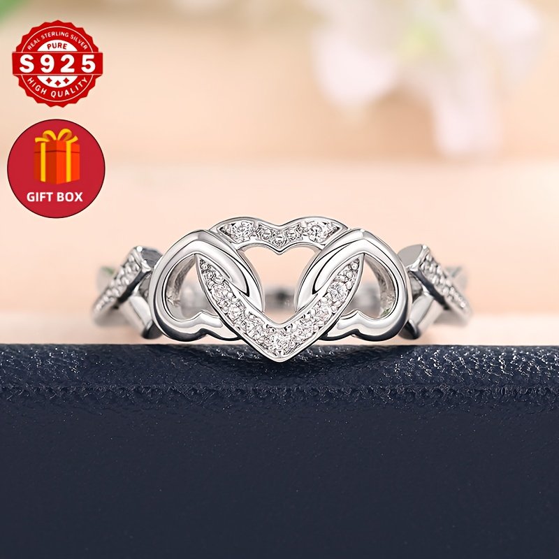 S925 Sweet Love Heart-Shaped Synthetic Zirconia Engagement Wedding Promise Ring – Elegant Silver Plated Jewelry for Women, August Birthstone Gift for Valentine'S Day, Birthday, Anniversary, Daily Wear, Anniversary Gift, Romantic Design, Polished Finish, S