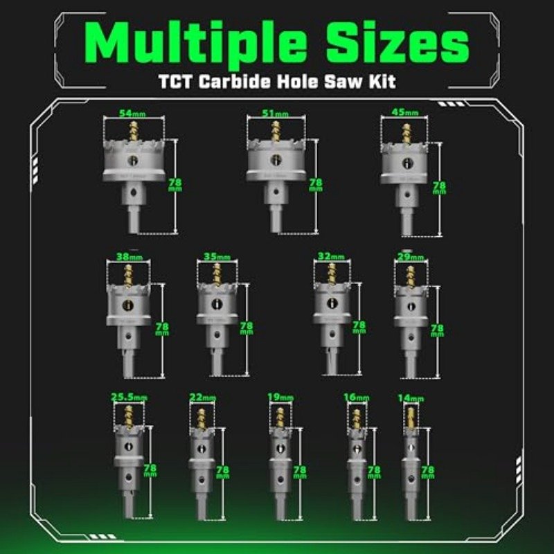 Be the first to review “TCT Hole Saw Kit 22 Pcs Carbide Hole Saw Set 9 16 to 21 8 for Metal Stainless Steel Wood Includes 2 Drill Bits Deburring Tool 4 Blades 3 Allen Wrenches Industrial DIY Use” Cancel reply