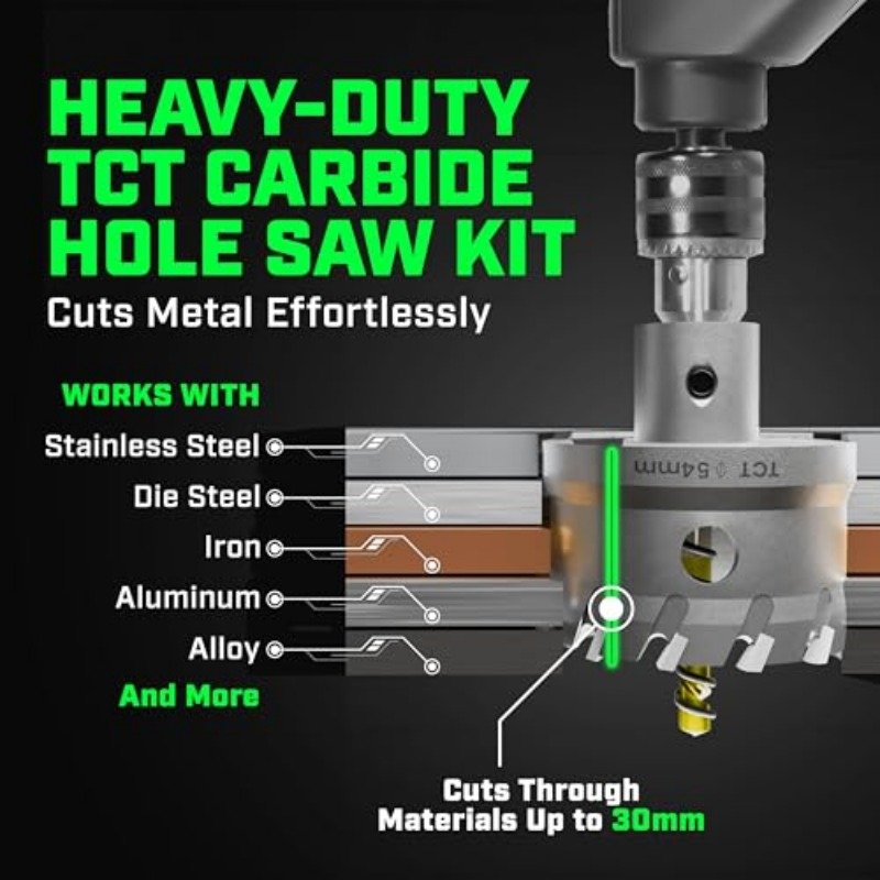 TCT Hole Saw Kit 22 Pcs Carbide Hole Saw Set 9 16 to 21 8 for Metal Stainless Steel Wood Includes 2 Drill Bits Deburring Tool 4 Blades 3 Allen Wrenches Industrial DIY Use